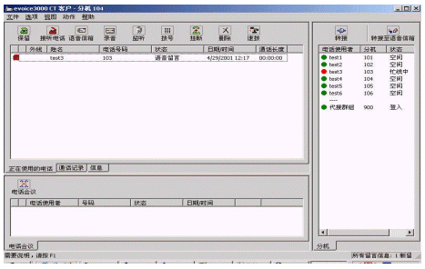 3) 分機用戶軟件:安裝在客戶的計算機中,是可以在屏幕上進行多種語音、數(shù)據(jù)處理的綜合信息中心,它將語音郵件和普通電子郵件完美結(jié)合;其界面操作功能親近直觀。