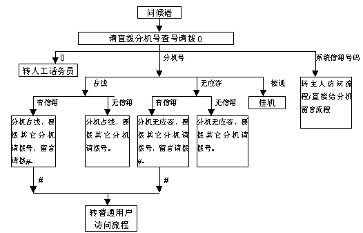 電腦話務(wù)員/語(yǔ)音信箱系統(tǒng)的語(yǔ)音流程圖如下圖。