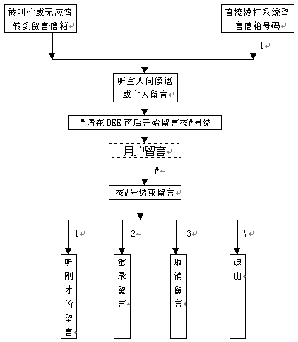 普通用戶是指沒(méi)有開(kāi)設(shè)信箱的用戶,這一類用戶沒(méi)有主人訪問(wèn)權(quán)力。 普通電話用戶可進(jìn)行如下操作: