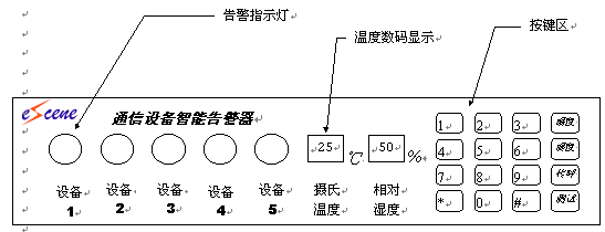 此產(chǎn)品不愧為機房管理人員的好幫手。它收集各種通信設(shè)備的告警信息,檢測機房溫度、濕度。一發(fā)現(xiàn)有異常情況便立即發(fā)出聲光報警,同時讓遠(yuǎn)端指示模塊發(fā)出告警,另外還會自動將告警信息送到您腰間的BP機,即使您出門在外也隨時洞悉機房異常情況。