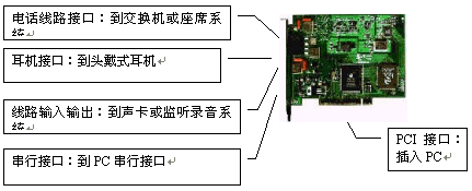 IN和LINE OUT接口,與聲卡配合實(shí)現(xiàn)語音錄放;計(jì)算機(jī)通過串行口實(shí)現(xiàn)對座席卡的控制。