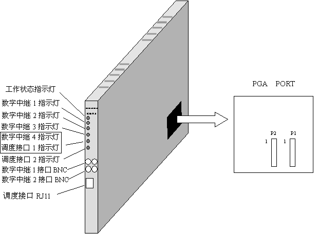 EDT4D 是在舊 EDT4 板上增加調(diào)度接口。見圖 4 , EDT4D 為一塊 H20-20 交換機插板,厚度為兩個槽口。 EDT4 通過扁平電纜與交換機公共控制機柜的背板 PGA 相連,提取交換機時隙;并將時隙轉換為由四個數(shù)字中繼接口 E1 組成的準 V5.2 接口與遠端模塊相連。一塊 EDT4 可接 2 個 PGA 端口組,共 128 個話路。