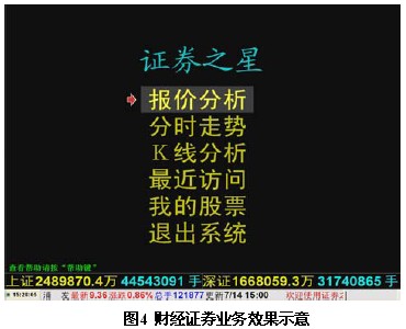 斯達康奔流系統(tǒng)的“證券之星”業(yè)務基于電視界面提供用戶一種易接受的信息讀取方式,可以有效地滿足這部分人群的需要。用戶通過遙控器和電視,可實現(xiàn)股票大盤行情顯示、個股實時行情分析、各種走線趨勢圖的瀏覽等功能。
