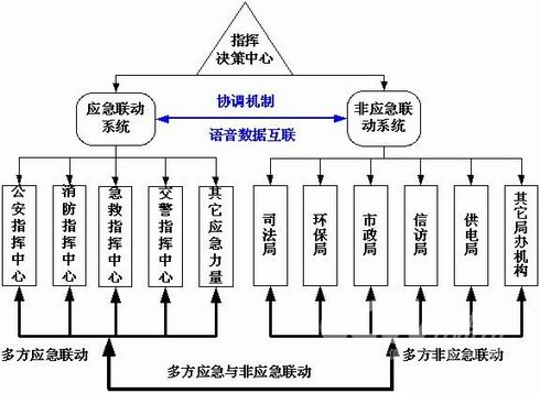 能夠?qū)崿F(xiàn)應(yīng)急機(jī)構(gòu)與非應(yīng)急部門之間的橫向聯(lián)動(dòng),即所謂“大聯(lián)動(dòng)”。對(duì)于有些復(fù)雜的事件,僅由應(yīng)急機(jī)構(gòu)無(wú)法處理,僅由非應(yīng)急機(jī)構(gòu)也無(wú)法處理,需要應(yīng)急機(jī)構(gòu)和非應(yīng)急機(jī)構(gòu)的同時(shí)參與、相互協(xié)調(diào)才能處理!皯(yīng)急與非應(yīng)急一體化聯(lián)動(dòng)”機(jī)制就是針對(duì)這種情況的有效解決方案。
