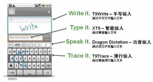 1.T9 Trace是Nuance T9產(chǎn)品組合中的一員,與T9、XT9、T9 Write等輸入技術(shù)共同為用戶打造多模式輸入體驗(yàn),使用戶擁有更多選擇,可以按照個(gè)人喜好輕松組合更快捷的輸入方法。這是市面上類(lèi)似產(chǎn)品,例如Swype,僅能依靠單一的滑行輸入所不能比擬的。