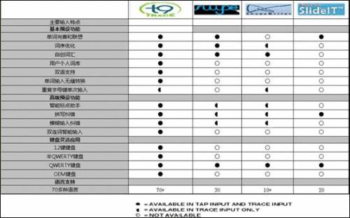 2.T9 Trace滑行輸入技術(shù)是基于XT9多模式、模塊結(jié)構(gòu)和強(qiáng)大的智能輸入功能上開(kāi)發(fā)的產(chǎn)品,備有聯(lián)想和詞語(yǔ)重組功能。