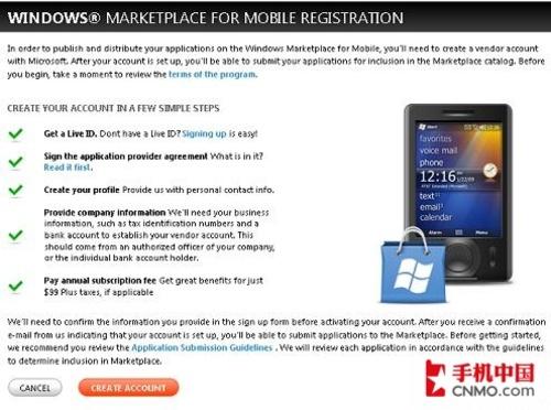 首先,開發(fā)者要注冊一個Live ID,以及有效的納稅人識別碼、銀行帳戶,如申請成功,還需繳納99美元的年費。與蘋果AppStore程序的上線流程類似,微軟會對每個程序進行審核,并且會有針對開發(fā)人員的指導方案。