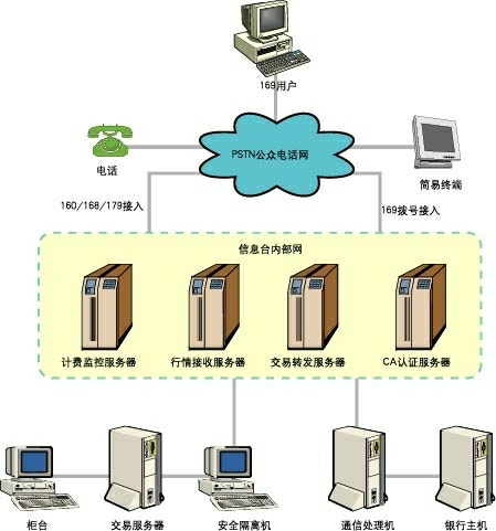 4.計費監(jiān)控服務器:對股民電話委托的特定信息服務進行計費管理。