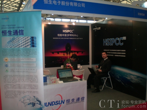 CTI論壇(ctiforum)11月20日消息(記者 張塵):近日,2009中國(guó)國(guó)際工業(yè)博覽會(huì)在上海新國(guó)際博覽中心隆重召開。恒生通信攜其自主知識(shí)產(chǎn)權(quán)的HSIPCC(Hundsun IP Callcenter,恒生IP呼叫中心)核心平臺(tái)亮相本屆工博會(huì)。受到了與會(huì)各界代表的廣泛關(guān)注。