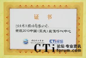 恒生通信榮獲中國(guó)(亞太)最佳呼叫中心大獎(jiǎng)
