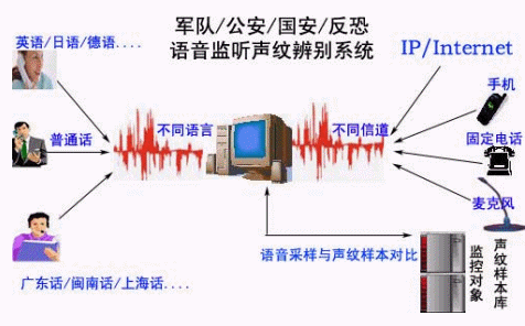 目前,犯罪分子、恐怖分子和間諜等的作案手段逐漸趨向高智能、高科技,為了逃避打擊,他們往往通過多種渠道進(jìn)行通信,如手機(jī)、固定電話、公用電話等與同伙或者親友聯(lián)系,有些特殊的被監(jiān)控電話是公用電話甚至是中繼線,由于通話量大,而且大量的通話都與案件無關(guān),涉及到被控對象的通話只是其中一小部分。這樣,公安和安全部門的執(zhí)法人員只能整天守候在偵控終端旁,花費大量的時間和精力處理大量無用的語音信息,等候嫌疑人的出現(xiàn);這樣,公安人員只能整天守候在偵控終端旁,花費大量的時間和精力處理大量無用的語音信息,等候嫌疑人的出現(xiàn);而一些在逃的嫌疑人,經(jīng)常幾個月才往特定的目標(biāo)處打一個電話,而且通話內(nèi)容又難以判斷,導(dǎo)致執(zhí)法人員很難分辨出嫌疑人的聲音。如何從大量的語音信息中提取嫌疑人的聲音,并更好地消除判別語音的過程中可能出現(xiàn)的人為誤差,從而提高對偵察對象身份識別的效率和準(zhǔn)確率,為偵查辦案提供可靠的情報,提高辦案效率,是有關(guān)部門迫切需要解決的問題。