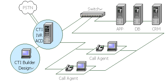。。CTI Builder本身是一個軟交換機,具有普通程控交換機的功能,如:分機切轉(zhuǎn)、外線呼入、內(nèi)線呼出、轉(zhuǎn)接電話、代接電話等等,同時還具有一些高級功能如:語音信箱、排隊機、內(nèi)線組呼叫、高級選線等功能。也就是說,系統(tǒng)已經(jīng)提供了呼叫中心通用的功能,用戶只需要定義自己的業(yè)務而不必關(guān)心呼叫中心的內(nèi)部交換。