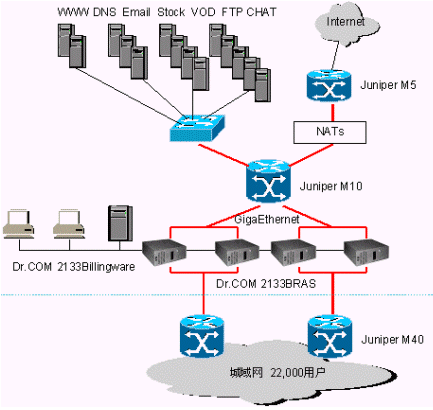 目前寬帶網(wǎng)上對用戶認證計費的技術(shù)手段有三種,一是二層的PPPOE技術(shù),二是二、三層通用的WEB認證技術(shù)。三是運用隧道技術(shù)的L2TP。三種技術(shù)各有千秋,小區(qū)運營商應(yīng)該根據(jù)自己網(wǎng)絡(luò)的特點和投資情況審慎選擇。比較一致的看法是采用ADSL接入方式的運營商必須選用PPPOE技術(shù),采用FTTB+LAN接入方式的運營商則必須選擇非PPPOE技術(shù),三層的WEB認證技術(shù)是最省錢也是最易行的解決方案。為了說明這個問題,下面我們結(jié)合一個寬帶網(wǎng)絡(luò)實例,將Dr.COM的三層認證技術(shù)與PPPOE作一個對比。