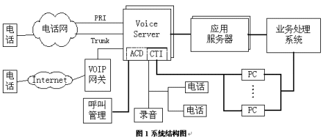 通過業(yè)務處理系統(tǒng),一方面為ACD系統(tǒng)提供基于產(chǎn)品信息、客戶信息的路由分配方式,為客戶提供更為迅速,更為個性化的服務;另一方面為IVR、座席等系統(tǒng)提供數(shù)據(jù)庫訪問服務、文件服務。同時應用服務器還提供認證加密、系統(tǒng)管理配置、網(wǎng)關等功能。