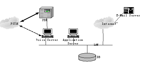 注: 本系統(tǒng)結構靈活, TTS, Application Server 和語音識別引擎可以根據(jù)系統(tǒng)的大小分別分布在幾臺服務器上, 或者集中在一臺服務器上.