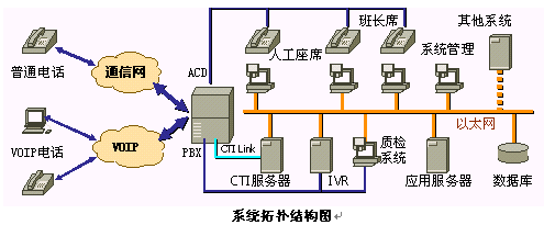 交換機(jī)實(shí)現(xiàn)電話呼入、呼出和話務(wù)管理等功能;提供自動(dòng)排隊(duì)機(jī)系統(tǒng),用于實(shí)現(xiàn)對(duì)來話的均衡分配;呼叫管理系統(tǒng),用于有效管理所有話務(wù);支持IVR;提供CTI