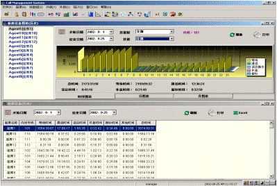 座席狀態(tài)實(shí)時(shí)監(jiān)控圖形顯示;線(xiàn)路狀態(tài)實(shí)時(shí)監(jiān)控圖形顯示;按時(shí)間以及不同條件進(jìn)行查詢(xún)的完善的歷史數(shù)據(jù)分類(lèi)分析及統(tǒng)計(jì);以統(tǒng)計(jì)報(bào)表形式提供中心各狀態(tài)及業(yè)績(jī)信息作為考評(píng)依據(jù);按Excel方式輸出報(bào)表,提供進(jìn)一步編輯功能。其所生成的上百?gòu)垐?bào)表,可以協(xié)助企業(yè)有效管理資源,檢查成本,預(yù)測(cè)改善現(xiàn)有運(yùn)作的潛在需求。