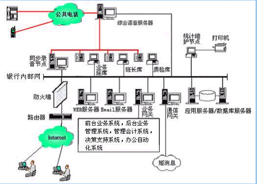 。。博宇公司銀行客戶服務中心系統(tǒng)由智能排隊機(含接入服務器)或帶語音板卡的工控機、CTI服務器、交互式語音應答系統(tǒng)IVR、語音傳真服務器、人工座席、工作流服務器、數據庫服務器、Internet服務器、業(yè)務網關服務器、通信網關服務器、錄音留言工作站、網絡系統(tǒng)等組成。其技術在國內處于領先水平。