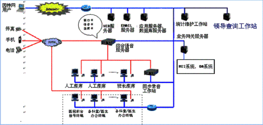 。。本系統(tǒng)提供基于計(jì)算機(jī)語(yǔ)音板卡和交換機(jī)兩種語(yǔ)音接入方式,都支持1號(hào)和7號(hào)信令線路的接入。對(duì)于20個(gè)以下座席的中小型醫(yī)院客戶服務(wù)中心系統(tǒng),則建議使用基于計(jì)算機(jī)語(yǔ)音板卡的形式,可以減少醫(yī)院投資,同時(shí)具有良好的系統(tǒng)性能;對(duì)于特大型的醫(yī)院客戶服務(wù)中心系統(tǒng),可選用交換機(jī)作為語(yǔ)音接入設(shè)備,保障系統(tǒng)的高可靠性和穩(wěn)定性。確保合理的、較少的投入,獲取最佳的配置,滿足不同醫(yī)院的需求。