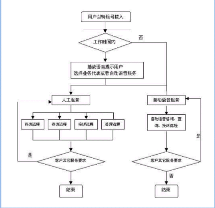 客戶也可以選擇自動(dòng)語(yǔ)音服務(wù)方式,根據(jù)系統(tǒng)的語(yǔ)音提示輸入按鍵,選擇類別,將自己所需要的服務(wù)要求以及自己的聯(lián)系方式信息以留言錄音的方式保存在系統(tǒng)中。系統(tǒng)同時(shí)還支持自動(dòng)傳真方式,客戶可以通過(guò)傳真機(jī)進(jìn)入本系統(tǒng),通過(guò)按鍵選擇傳真方式,將所需要的服務(wù)要求等的文本內(nèi)容傳真給系統(tǒng),系統(tǒng)自動(dòng)接受并存入數(shù)據(jù)庫(kù)。