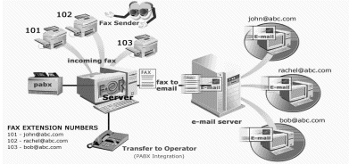 每一個(gè) e-mail地址都可以對應(yīng)一個(gè)獨(dú)立的傳真分機(jī)號碼,當(dāng)有傳真呼入時(shí),自動地將傳真發(fā)送給指定的接收者