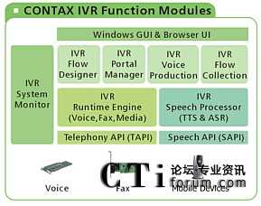 CONTAX IVR 就在PC上運(yùn)作,可以隨時(shí)隨地保證公司與客戶、員工之間,以及與投資者、合作伙伴之間的通信,即時(shí)地、自動地獲得資訊,完成交易。