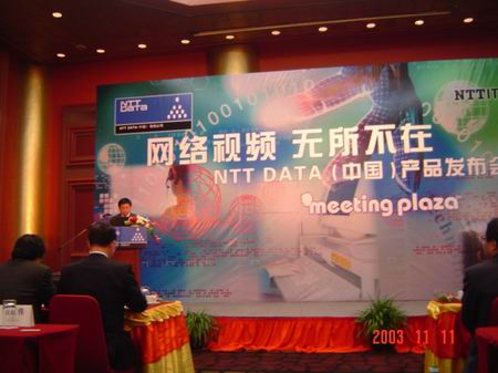 2003年11月11日,NTT DATA(中國)有限公司,在長城飯店舉行了名為“網(wǎng)絡(luò)視頻——無所不在”的產(chǎn)品發(fā)布會。會上,NTT DATA(中國)有限公司正式推出了一款網(wǎng)絡(luò)視頻軟件產(chǎn)品——“MeetingPlaza”。此產(chǎn)品開拓了視頻系統(tǒng)在圖像效果、控制靈活度以及性價比上的全新應(yīng)用模式。該產(chǎn)品的開發(fā)商N(yùn)TT-IT,自2001年6月起在日本開始系統(tǒng)的銷售及提供ASP服務(wù)。到現(xiàn)在已經(jīng)向500家以上的日本企業(yè)及地方政府提供了服務(wù),在日本深受好評。在中國,雖然軟件視頻會議系統(tǒng)還處在起步階段,但依據(jù)未來視頻通訊的廣大需求,以及“MeetingPlaza”具有的投入成本低、限制少和適用性強(qiáng)的特點(diǎn),都將使該產(chǎn)品更加具有市場潛力。