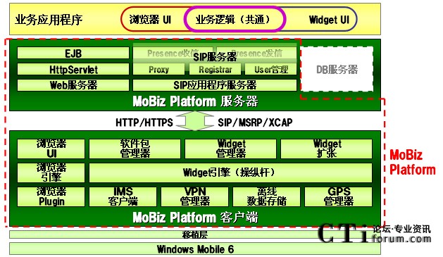 智能手機業(yè)務應用軟件開發(fā)•運行的基干中間件“MoBiz Platform”,由MoBiz服務器和MoBiz客戶端構成。