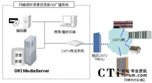該系統(tǒng)以IP視頻傳輸系統(tǒng)“OKI MediaServer”為基礎,是采用支持HD編碼裝置的錄像目錄庫系統(tǒng)。通過簡單的GUI操作可以把編制成目錄的圖像制作成電視廣播節(jié)目并通過CATV電視臺播放。