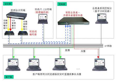 同時(shí)系統(tǒng)具備直播、點(diǎn)播功能,用戶使用IE瀏覽器即可接收會(huì)議的實(shí)時(shí)直播或進(jìn)行事后點(diǎn)播,通過(guò)直播或點(diǎn)播可同步觀看到會(huì)議中視音頻和數(shù)據(jù)內(nèi)容,觀看會(huì)議的效果如同身處會(huì)場(chǎng)之后。會(huì)易錄極大地?cái)U(kuò)展了視頻系統(tǒng)的功能和應(yīng)用,適合任何已有或擬建視頻會(huì)議系統(tǒng)的用戶使用。