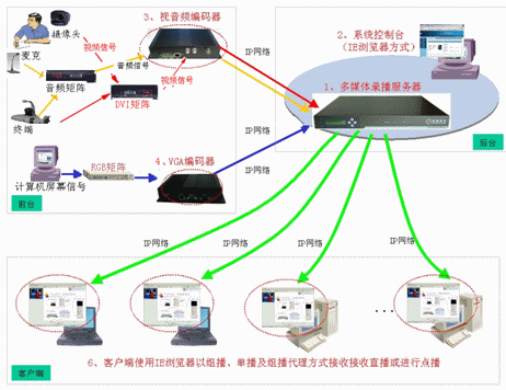 通過服務(wù)器內(nèi)置單播或組播功能方式將會(huì)議現(xiàn)場(chǎng)的視頻、音頻、計(jì)算機(jī)屏幕上的圖像內(nèi)容和過程在網(wǎng)絡(luò)上進(jìn)行實(shí)時(shí)直播,用戶可通過IE瀏覽器登錄服務(wù)器實(shí)時(shí)接收會(huì)議現(xiàn)場(chǎng)的視頻、音頻和計(jì)算機(jī)動(dòng)態(tài)屏幕內(nèi)容,也可以選擇性的直播部分媒體流,直播延時(shí)小。同時(shí)系統(tǒng)獨(dú)家支持組播代理功能,無須更改網(wǎng)絡(luò)設(shè)備設(shè)置的即可實(shí)現(xiàn)跨網(wǎng)段的組播。