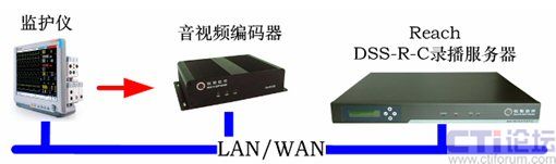 銳取遠(yuǎn)程醫(yī)療系統(tǒng)前端視音頻編碼器將采集到的手術(shù)室監(jiān)護(hù)儀的信號進(jìn)行實(shí)時(shí)編碼和壓縮,通過網(wǎng)絡(luò)傳送給銳取多媒體錄播系統(tǒng)遠(yuǎn)程醫(yī)療系統(tǒng)后臺服務(wù)器上。