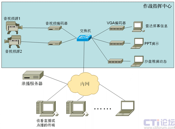 圖2 軍事演習(xí)作戰(zhàn)指揮中心全信息錄播示意圖