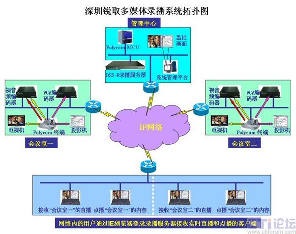 網(wǎng)絡(luò)內(nèi)的任意一臺(tái)計(jì)算機(jī)可通過(guò)IE瀏覽器直接登錄到管理中心的錄播服務(wù)器(需要管理員授權(quán)),可以接收實(shí)時(shí)的會(huì)議直播內(nèi)容,也可以對(duì)錄制好的文件進(jìn)行點(diǎn)播回放。