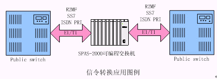 tyyy因為信令標準不同,部分國外通信設(shè)備無法與國內(nèi)通訊網(wǎng)互通互連,SPAS-2000可編程交換機接口豐富,支持信令標準全面,成本低廉,可以實現(xiàn)R2MF、SS7、ISDN PRA、CAS、接入網(wǎng)V5信令等標準之間的轉(zhuǎn)換。當輸入和輸出的中繼接口不同時,其語音編碼可能不同,可利用多功能信號音板實現(xiàn)語音編碼的轉(zhuǎn)換。例如可以實現(xiàn)E1 A LAW和T1 U LAW之間的語音互轉(zhuǎn)。