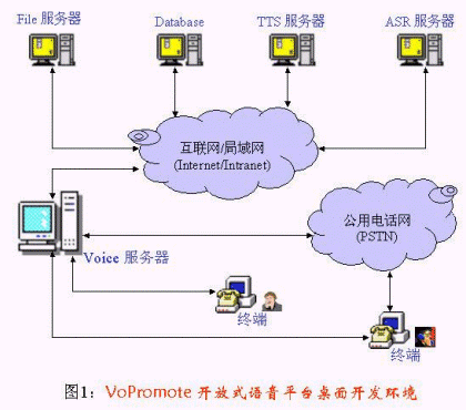 圖1是VoPromote 1.0開放式語(yǔ)音平臺(tái)桌面開發(fā)系統(tǒng)體系結(jié)構(gòu)。