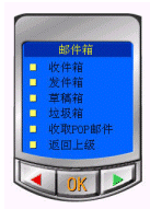 下設(shè)收件箱、發(fā)件箱、草稿箱、垃圾箱、收取POP郵件五項菜單。
