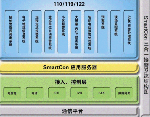 110/119/122等系統(tǒng)和一般企業(yè)的客服系統(tǒng)和熱線系統(tǒng)有一定的共性,但它們肩負(fù)著保障社會(huì)安定和人民生命財(cái)產(chǎn)安全的重任,這些決定了該系統(tǒng)的特殊性,使它有別于其他行業(yè)的應(yīng)用。我們公司依托雄厚的技術(shù)開(kāi)發(fā)力量,結(jié)合多年來(lái)在公安/消防/交通領(lǐng)域豐富的系統(tǒng)研發(fā)實(shí)施經(jīng)驗(yàn)積累,面向未來(lái)的發(fā)展,提出了以SmartCon呼叫中心平臺(tái)為核心的三體合一的、綜合的整體解決方案。該解決方案充分考慮到公安/消防/交通系統(tǒng)的現(xiàn)在和未來(lái)的發(fā)展趨勢(shì),110/119/122三個(gè)系統(tǒng)既可分開(kāi)單獨(dú)處理報(bào)警事務(wù),也可整體考慮、整體調(diào)度。該解決方案涵蓋了電話報(bào)警、SMS報(bào)警、接處警指揮調(diào)度、電子地理信息系統(tǒng)(GIS)、現(xiàn)場(chǎng)監(jiān)視以及小區(qū)報(bào)警雄等等,各個(gè)子系統(tǒng)之間相對(duì)獨(dú)立,用戶可以根據(jù)實(shí)際要求,進(jìn)行自由搭配,充分體現(xiàn)了系統(tǒng)的靈活性。