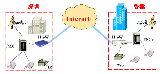 VOIP即是Voice Over IP,是把話音或傳真轉(zhuǎn)換成數(shù)據(jù),然后與數(shù)據(jù)一起共享同一個IP網(wǎng)絡(luò)(Internet互聯(lián)網(wǎng))。深圳海恒科技有限公司提供的企業(yè)網(wǎng)通訊系統(tǒng),是一種直接接普通電話,通過Internet網(wǎng)絡(luò)撥打國際長途電話的設(shè)備,通話質(zhì)量接近IDD長途電話,廣泛適用于國內(nèi)外中小型外向型企業(yè)。使用海恒企業(yè)網(wǎng)絡(luò)通訊系統(tǒng),企業(yè)內(nèi)部通訊(包括電話和傳真)所有費(fèi)用都將全部為零。