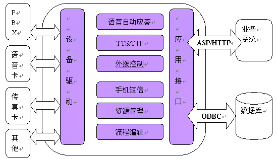 CTI服務(wù)器是整個系統(tǒng)的核心,通過內(nèi)置電話語音/傳真卡,接入PSTN電話網(wǎng)。該服務(wù)器可作為一個相對獨立的系統(tǒng)單獨運行,也可以通過企業(yè)局域網(wǎng)與企業(yè)的業(yè)務(wù)系統(tǒng)連接。