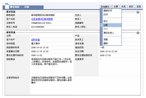 醫(yī)療設(shè)備的維修以現(xiàn)場服務(wù)為主,在接到客戶服務(wù)請求到派工的流程,依靠紙張遠遠達不到高效的要求,維修情況的記錄已僅僅是事后的文字記錄,通常需要層層上報,更不具備匯總和統(tǒng)計分析的功能,作為領(lǐng)導(dǎo)不能適時監(jiān)控和管理在外的維修服務(wù)工程師。