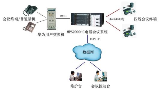在接入上,通過2個數(shù)字中繼與華為大型用戶交換機(jī)互連,實現(xiàn)華為用戶交換機(jī)下的模擬用戶作為與會用戶的接入,也可通過華為交換機(jī)出局,實現(xiàn)PSTN網(wǎng)內(nèi)的用戶接入。