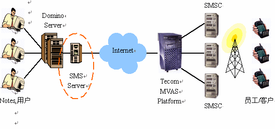 SMS Server,并根據(jù)實際情況安裝運行在專用硬件服務器上,或與Domino共享硬件服務器。