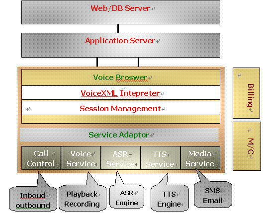 o 應用服務器(Application Server) 用于存放和產(chǎn)生VoiceXML腳本。