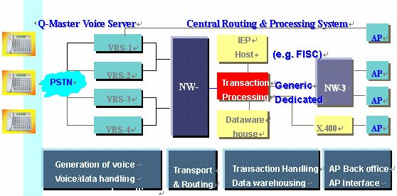 YesMobile的Q-system 包含了消費者端的酷管家Q-Master 以及企業(yè)端的Q-Center,它是一個信息化服務(wù)的系統(tǒng)平臺,它可以幫助解決多種存取裝置的問題。典型的用戶端設(shè)備就是酷管家(Q-Master),它是配備液晶顯示(LCD)的信息查詢及交易終端機,使用ADSI通訊規(guī)格,具有呈現(xiàn)聲音及資料的功能及提供親切的人機界面。