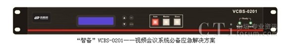 在視頻會(huì)議召開的過程中,主會(huì)場視頻終端等設(shè)備如果發(fā)生故障時(shí)其音視頻信號(hào)會(huì)發(fā)生中斷,由此將會(huì)使整個(gè)視頻會(huì)議無法繼續(xù)進(jìn)行,傳統(tǒng)的解決辦法是配置第二套視頻終端作為冷備份,當(dāng)主設(shè)備發(fā)生中斷時(shí)由系統(tǒng)維護(hù)人員以手工方式切換至備用設(shè)備。北京真視通自主研發(fā)的智備(產(chǎn)品型號(hào):VCBS-0201),解決了主會(huì)場主備終端的自動(dòng)、快速、無縫切換的問題。