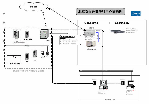 - 與現(xiàn)有客服中心IPCC解決方案中的2臺Cisco36相連,實(shí)現(xiàn)農(nóng)行本行業(yè)務(wù)的外撥服務(wù),如信用卡欠費(fèi)催繳、代收汽車保險業(yè)務(wù)營銷、養(yǎng)路費(fèi)客戶關(guān)懷等