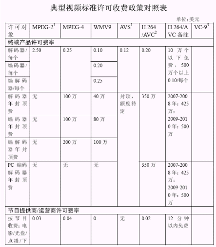 - 2004年9月,MPEG-LA(負責收取專利許可費的組織,位于美國)修訂了MPEG-4可視專利許可政策,但"基于使用"的定價模式仍然保持。