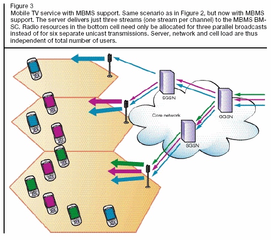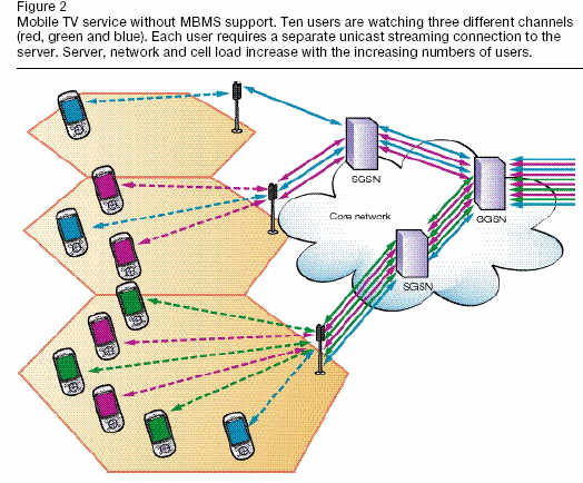 許多移動(dòng)運(yùn)營(yíng)商在2004年推出了移動(dòng)電視業(yè)務(wù),使用者可以通過(guò)他們的手機(jī)終端觀看電視節(jié)目。目前是通過(guò)點(diǎn)對(duì)點(diǎn)的移動(dòng)流媒體技術(shù)來(lái)提供移動(dòng)電視業(yè)務(wù)的。然而,由于類(lèi)似移動(dòng)電視這種“多媒體”業(yè)務(wù)即將大規(guī)模地爆發(fā)應(yīng)用,因此需要采用新的網(wǎng)絡(luò)通信技術(shù)如廣播和組播。