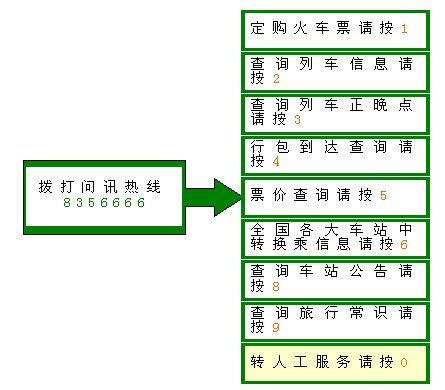 進入系統(tǒng)后可以進行定購火車票、查詢列車信息、查詢列車正晚點、行包到達查詢等操作。所有供查詢信息都由系統(tǒng)實時從數(shù)據(jù)庫中調(diào)用,由訊飛語音合成系統(tǒng)轉(zhuǎn)換成語音播放,不僅保證了信息的實時性,同時業(yè)務更加靈活,語音效果更好,系統(tǒng)的管理和維護也比以前便捷多了。